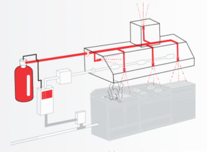 - Sistemas de Extinción Automática para Cocinas Industriales a base de acetato de potasio para fuegos de clase K y Anhídrido Carbónico.